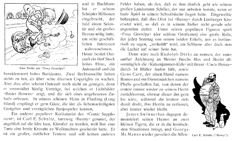 This is probably the first text explaining the new phenomenon of American Sunday comics to a German audience.