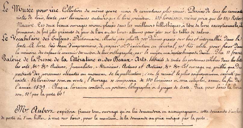 1839: by the end of the year Töpffer's protests against the bad quality of the