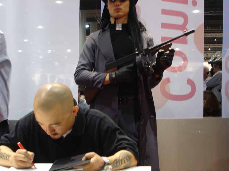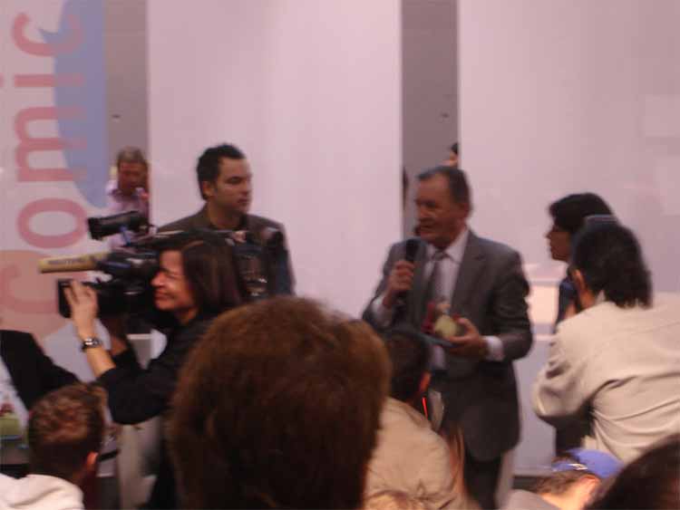 left to right: Eckart Schott (editor Salleck, publishes Juillard), André Juillard, Interpreter, Andreas Knigge (comics historian, ex editor-in-chief of Carlsen)
